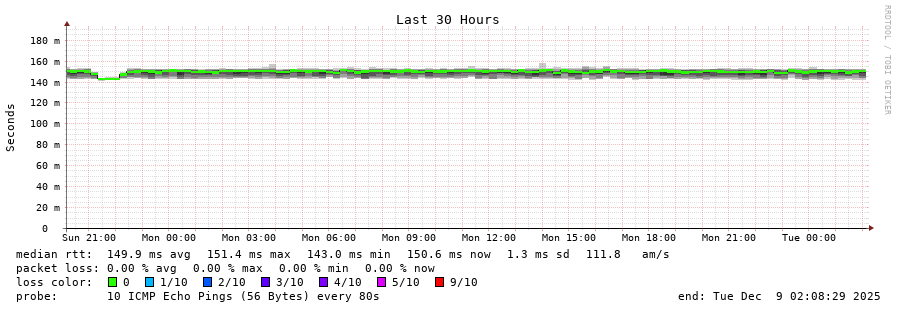 13 > atlas-ripe.romnet.org (194.42.102.9) [AS31554] 152.598ms 152.355ms 152.447ms