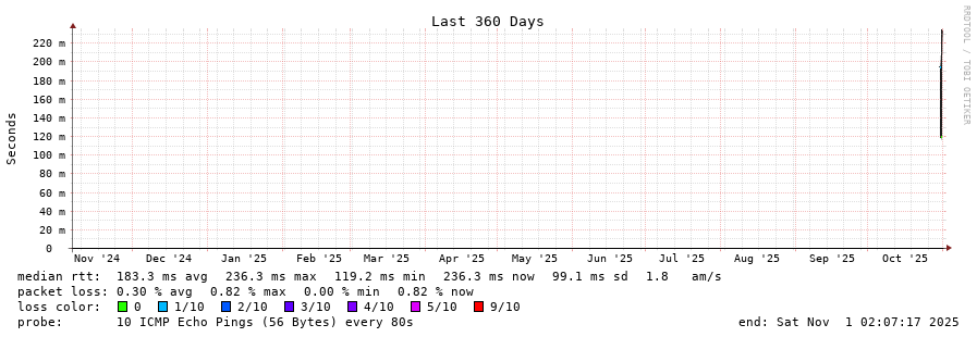 traceroute to 194.243.137.99 (194.243.137.99), 30 hops max, 60 byte packets  -  Generated at 2025-10-31 19:30:01