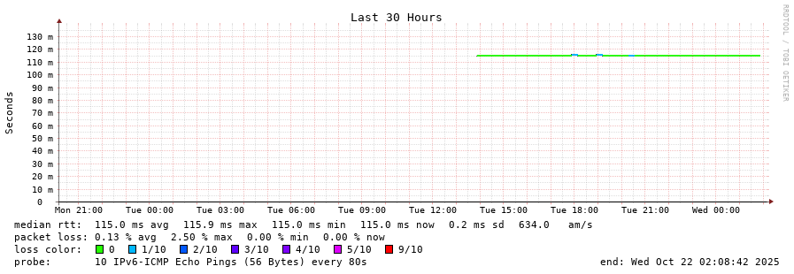 6 > 2001:1900:5:2:2::d1e (2001:1900:5:2:2::d1e) [AS3356] 115.102ms 115.022ms 115.303ms