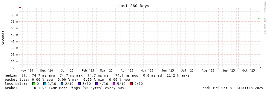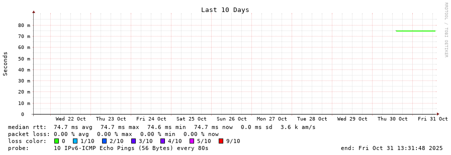 19 > lil2-gra.smokeping.ovh.net (2001:41d0:302:1000::18:665e) [AS16276] 75.010ms 74.881ms 74.884ms