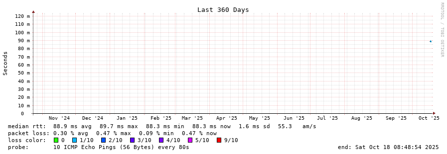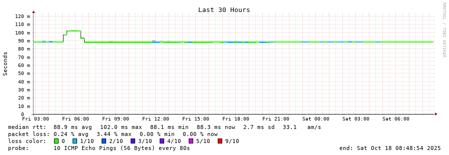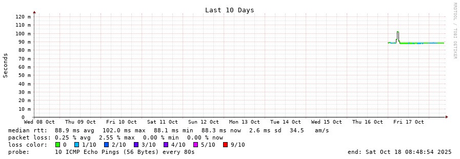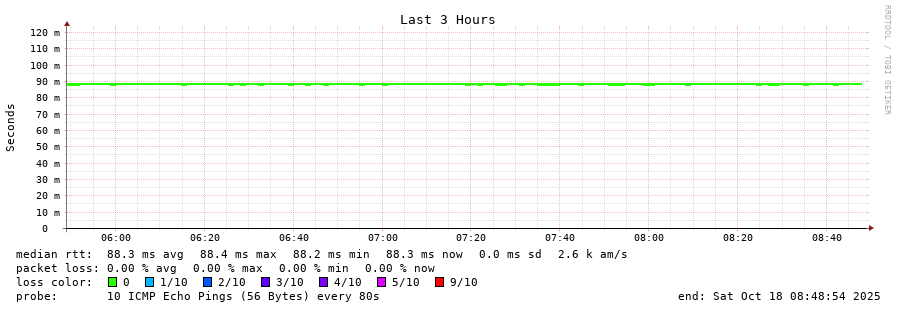 10 > 181.225.81.174 (181.225.81.174) [AS263210] 88.364ms 88.260ms 88.223ms
