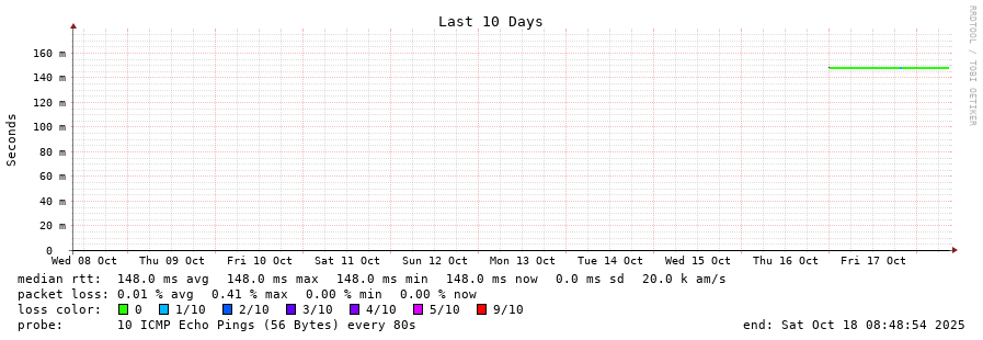traceroute to 190.105.0.2 (190.105.0.2), 30 hops max, 60 byte packets - Generated at 2025-10-18 08:45:01
