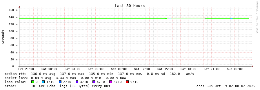 13 > 190.108.85.100 (190.108.85.100) [AS18678] 136.829ms 136.815ms 136.803ms